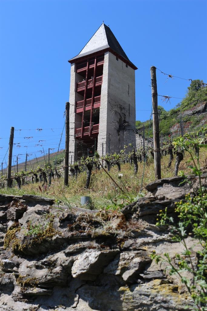 Ursprünglich handelte es sich um einen ehemaligen Wehrturm in der Nordmauer der Bacharacher Stadtbefestigung aus Schieferbruchstein. 1899 wurde er als Wasserbehälter wieder hergestellt. Der Turm hat einen U-förmigen Grundriss, auch Schalenturm genannt. Seine offene Seite ist teilweise mit einer verschieferten Fachwerkwand verkleidet, während ein Walmdach in Schieferdeckung den Postenturm bekrönt.