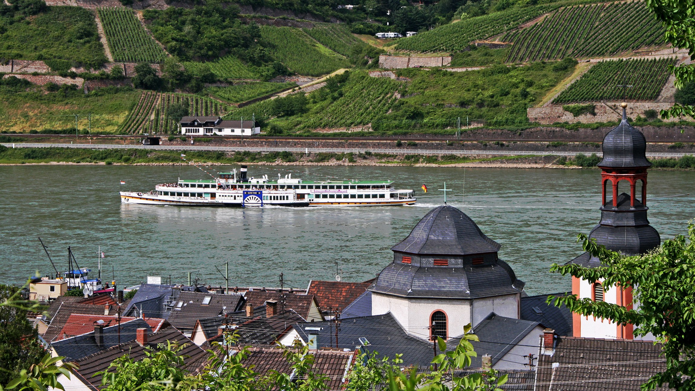 In Anlehnung an schlichte barocke Elemente präsentiert sich die Kirche als lichtdurchfluteter kuppel- und tonnengewölbter Raum. Die Gestaltung der Fenster zeigt u.a. Darstellungen der Heiligen Goar, Hildegard und Clemens sowie biblische Motive. Vier runde Wappenscheiben des 16./17. Jahrhunderts sowie figürliche Rundscheiben von 1898 ergänzen diese. Zum Inventar der Pfarrkirche zählen Bildnisse der Heiligen Clemens und Valentin (vom Ende des 15. Jahrhunderts) sowie Nikolaus (18. Jahrhundert); neugotischer Taufstein, Gefallenengedächtnis beider Weltkriege, pneumatische Klais-Orgel (1825), Chorneugestaltung aus dem Jahre 1970.