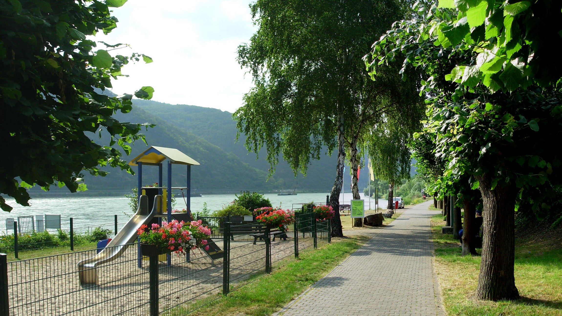 Entlang des Radweges ziehen sich vom Friedhof bis zum „Strandbad“ die Rheinanlagen hin. Als Mittelpunkt ist die Kranenmaueranlage, die neben dem Kleinkinderspielplatz und der Schiffsanlegestelle ausreichend Platz für Rast und Ruhe bietet.